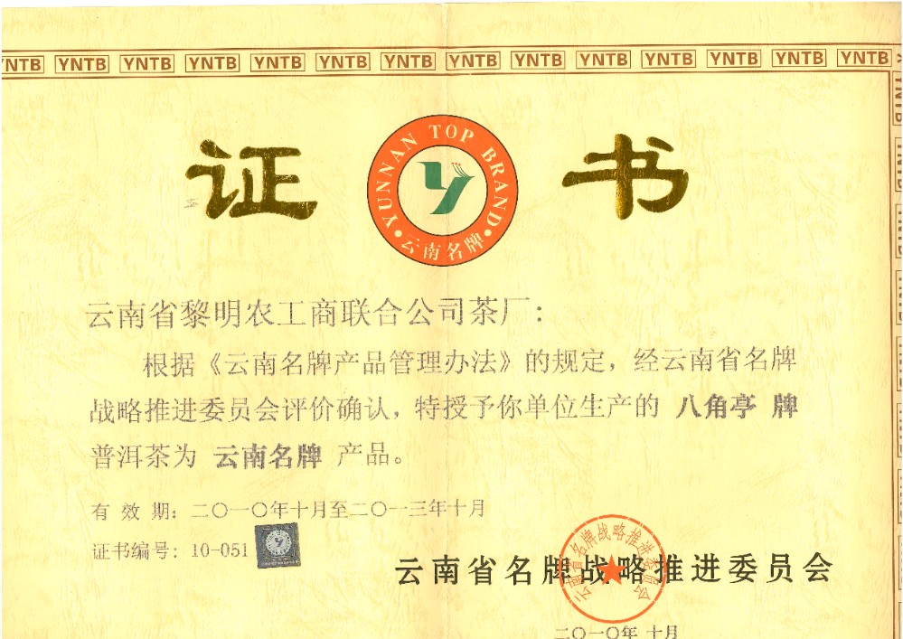發(fā)證機(jī)構(gòu): | 云南省名牌戰(zhàn)略推進(jìn)委員會 | 發(fā)證時(shí)間 : | 2010-10-01 |