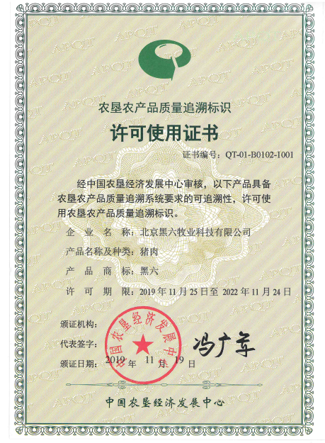 榮譽(yù)資質(zhì) 農(nóng)墾農(nóng)產(chǎn)品質(zhì)量追溯標(biāo)識(shí)許可使用證書