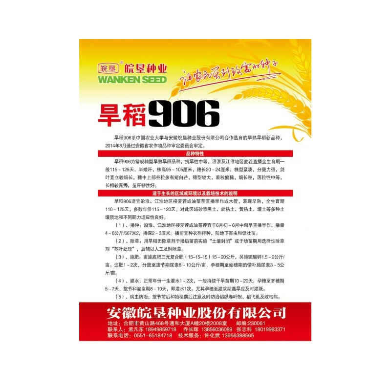 品種名稱:旱稻906