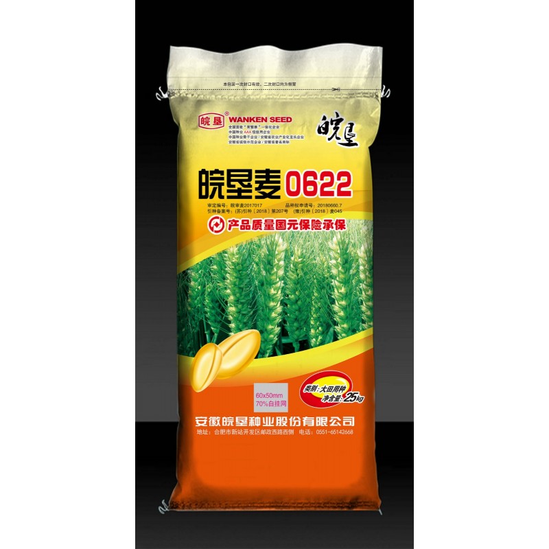 半冬偏春性,全生育期221天,較對照皖麥52早熟1天。幼苗半直立,長勢壯。春季生長發育穩健,兩極分化較快。分蘗力一般,成穗率高。株高83厘米左右,株型半緊湊,莖稈被蠟粉、彈性好,抗倒伏。旗葉上沖、干尖,穗層厚,落黃及熟相佳。長芒、白殼、白粒、穗長方型。2015/2016年畝穗數平均為47/42萬,穗粒數27/31粒,千粒重47/45克。2015年/2016年兩年抗病性接種鑒定結果:中抗/中感赤霉病(嚴重度2.8/3.2);中感白粉病(病級5級);感紋枯病(病指44)。2015年/2016年兩年品質分析結果:容重838/809g/L,粗蛋白(干基)14.33/14.85%,濕面筋(以14%水分計)31.1/32.9%,吸水量57.1/58.8mL/100g,穩定時間9.2/5.9min。