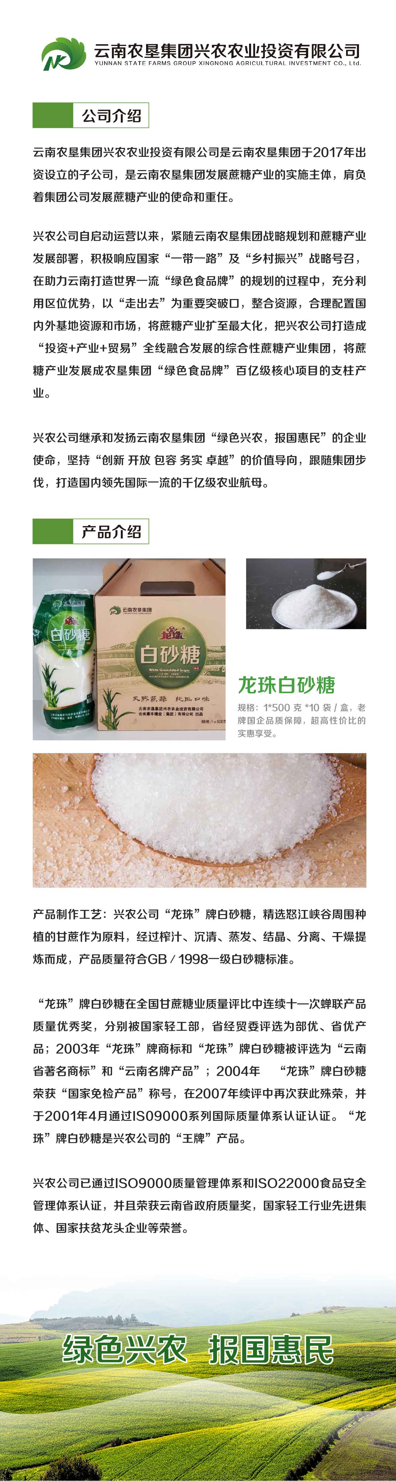 云南農(nóng)墾集團(tuán)興農(nóng)農(nóng)業(yè)投資有限公司是云南農(nóng)墾集團(tuán)于2017年出資設(shè)立的子公司,是云南農(nóng)墾集團(tuán)發(fā)展蔗糖產(chǎn)業(yè)的實(shí)施主體,肩負(fù)著集團(tuán)公司發(fā)展蔗糖產(chǎn)業(yè)的使命和重任。