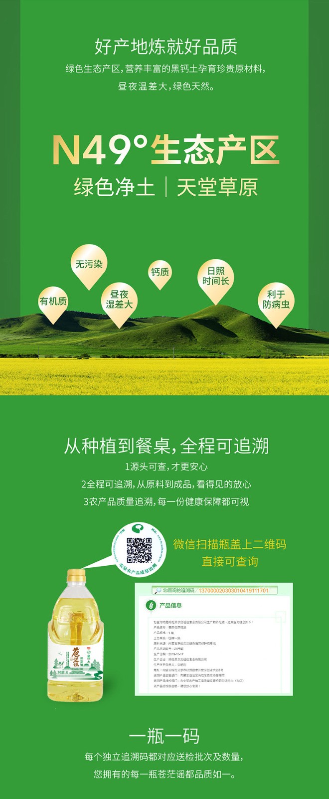 呼倫貝爾農(nóng)墾出品蒼茫謠芥花油非轉(zhuǎn)基因菜籽油1.8L*2禮盒